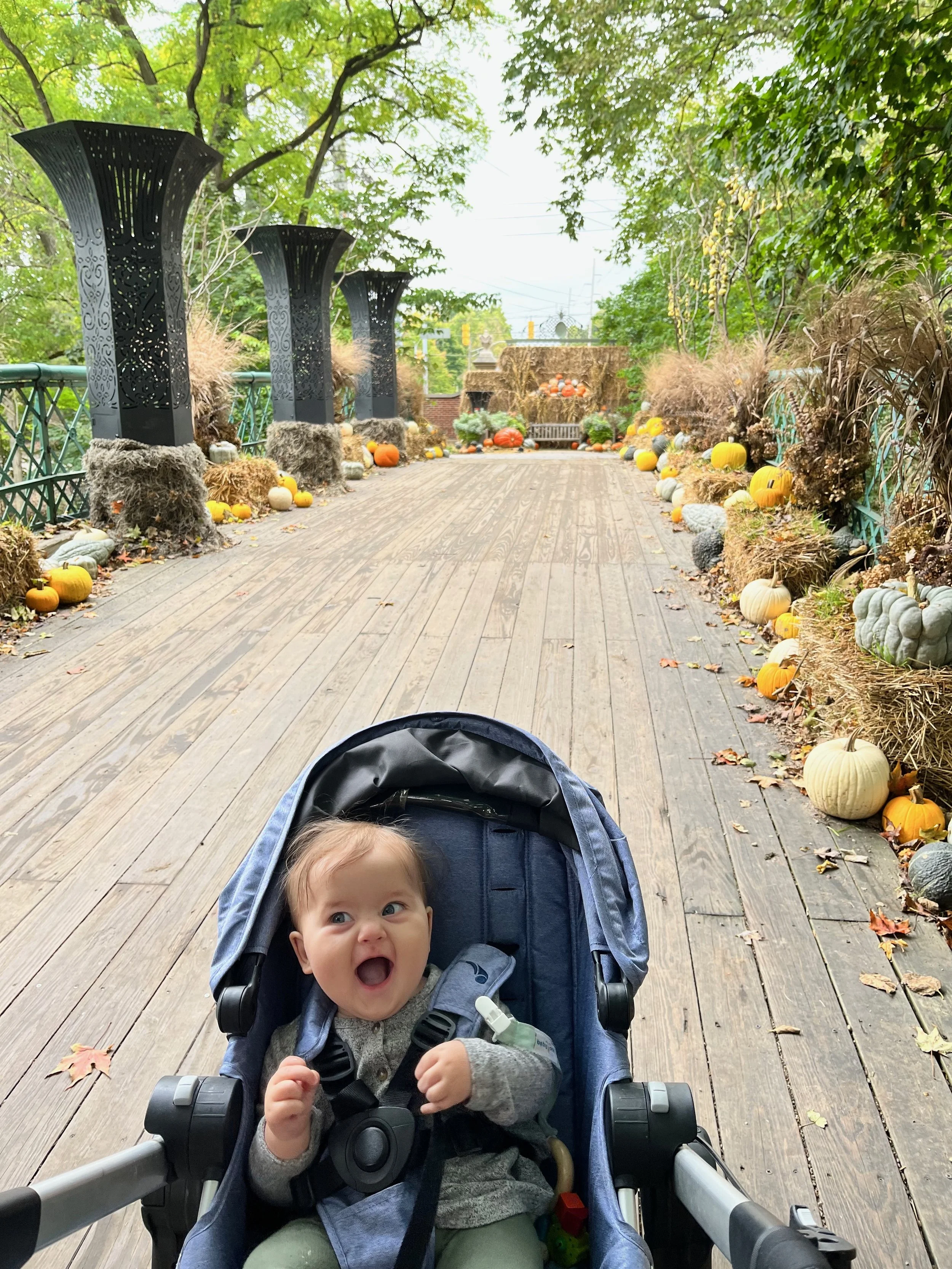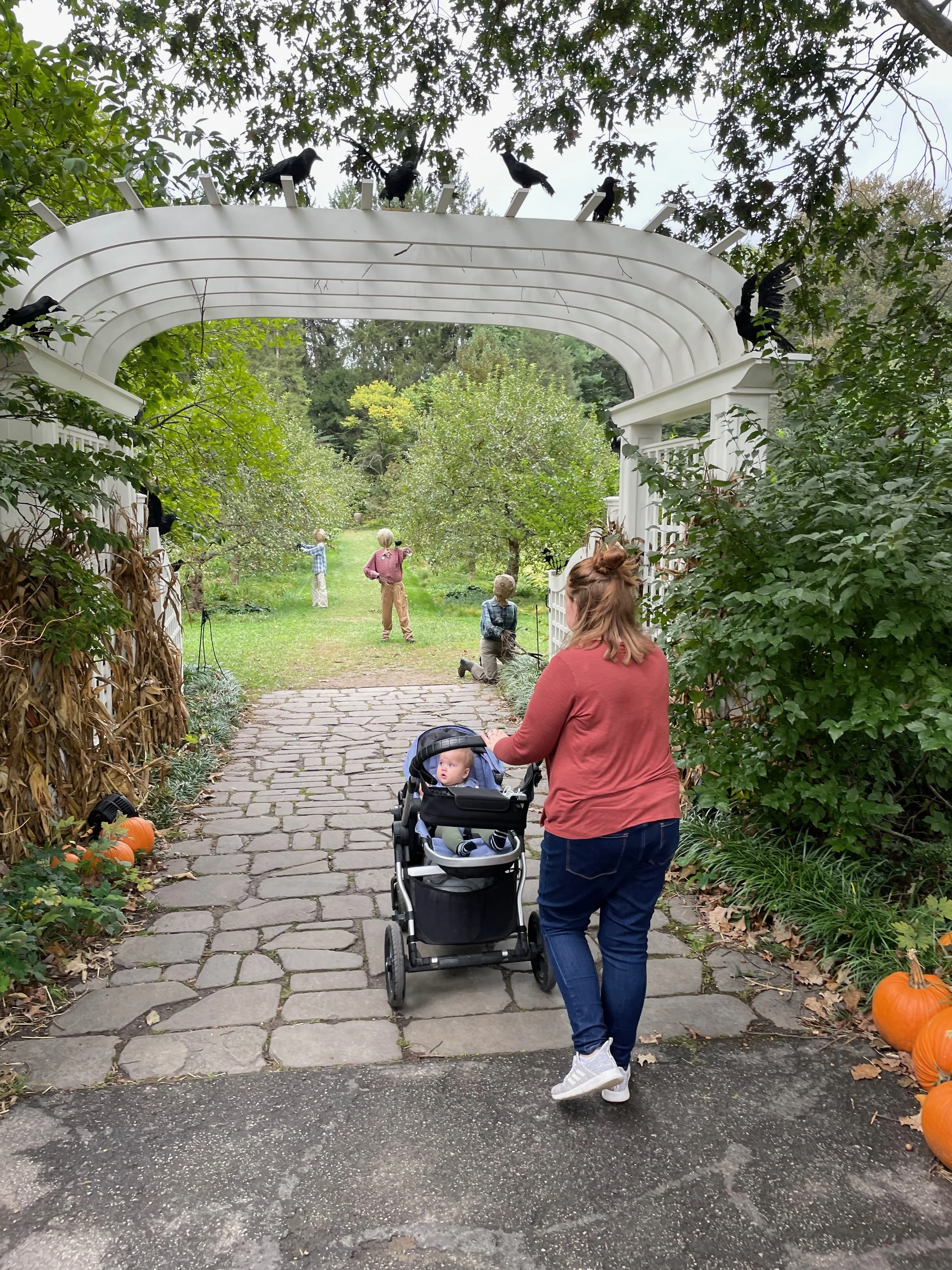 After our mid-day break, we went over to Newfields Art Museum. We visited on the first Thursday of the month and were able to get free entry for our whole family. We did have to make advanced reservations beforehand. We spent most of our time visiting the outside gardens. They were decorated for Harvest Nights which takes place during October. While there weren’t the activities and food available that comes out at night, we were able to see a lot of the decorations. My 1 year old had a great time just pointing out all the different type of pumpkins. Note, strollers are not allowed inside the Lilly House, but there is stroller parking just outside of it.
