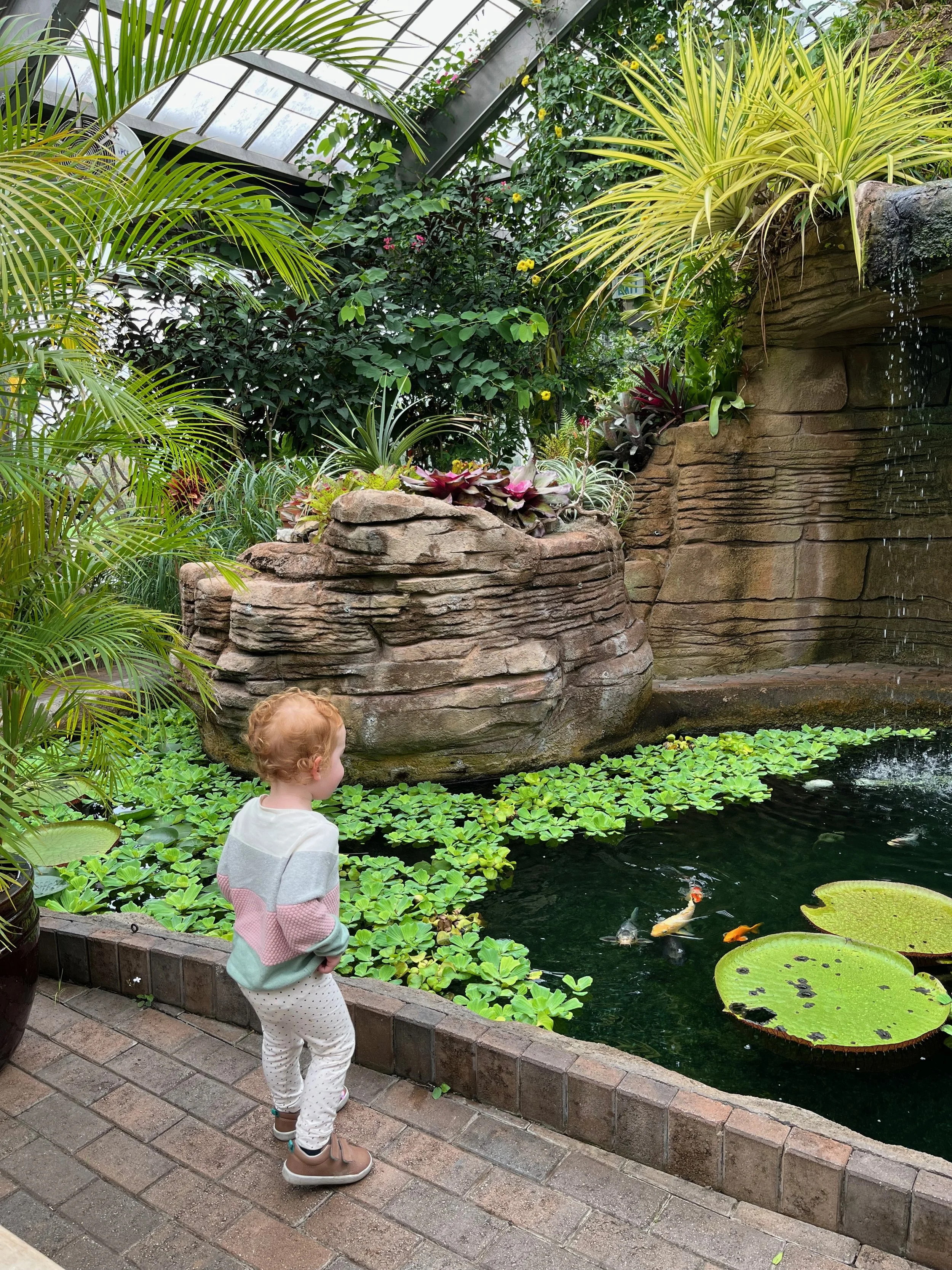 The conservatory is gorgeous and well maintained. The highlight of the conservatory for my kids were the large koi ponds and waterfalls. They often have different temporary shows or exhibits on - like a gnome scavenger hunt or carnivorous plants that are also fun for kids. We spent about 15-20 minutes inside, including stops for looking at the fish and taking pictures.