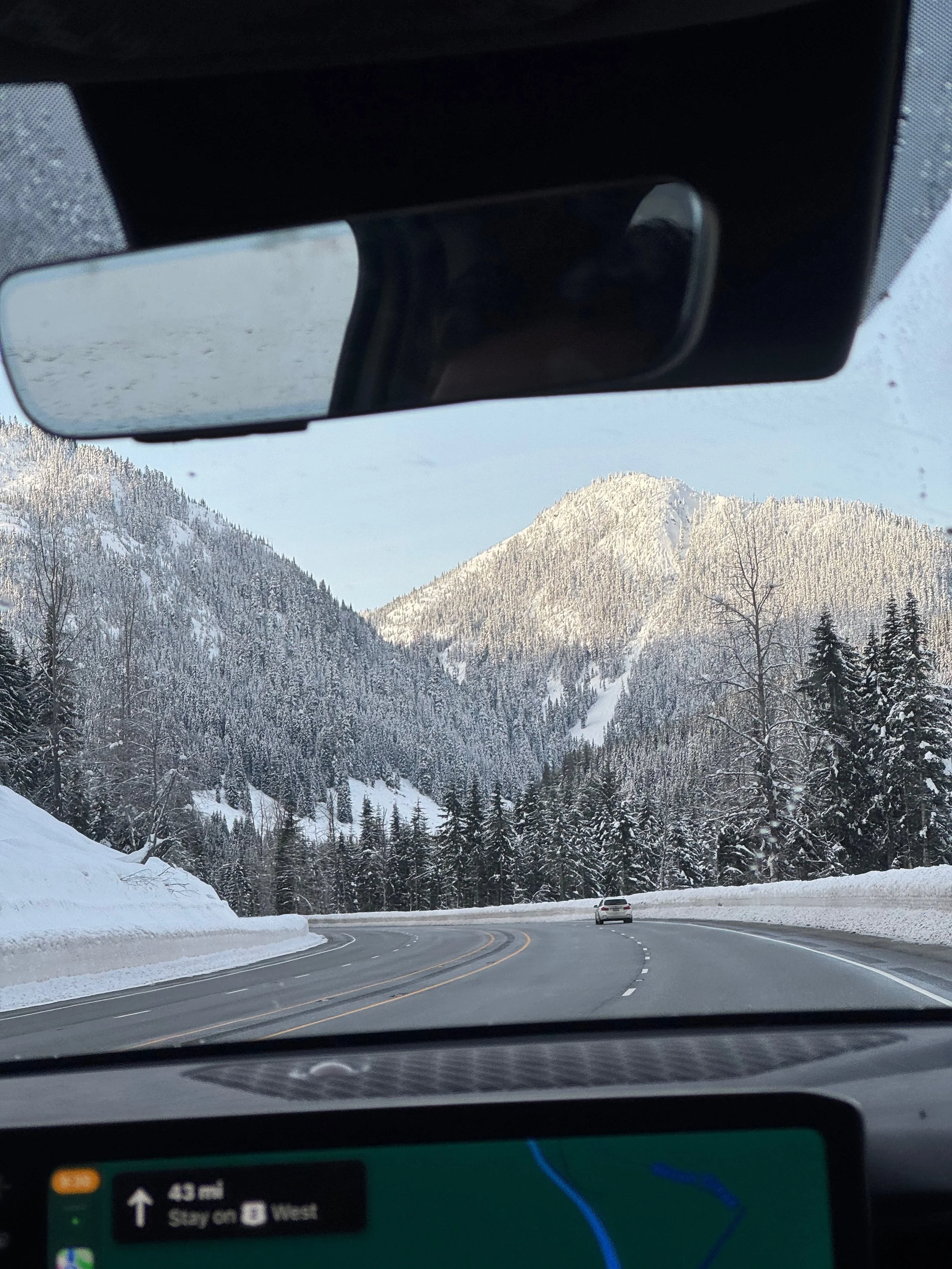 If you are unfamiliar with driving in the snow, watching a video or two will help you prepare. When we visited, it was lightly snowing the morning we left but I-90 + hwy-97 route was dry. On the way home, we took highway 2. It had snowed the day before but it was sunny and the snow plows had time to clear it. It was mostly clear except for a small section that was slick but not enough to put on our snow chains. I’ve seen often people saying you need AWD or 4WD, however, we drove with our RWD car and it did great with prior planning to not drive when it was actively snowing.