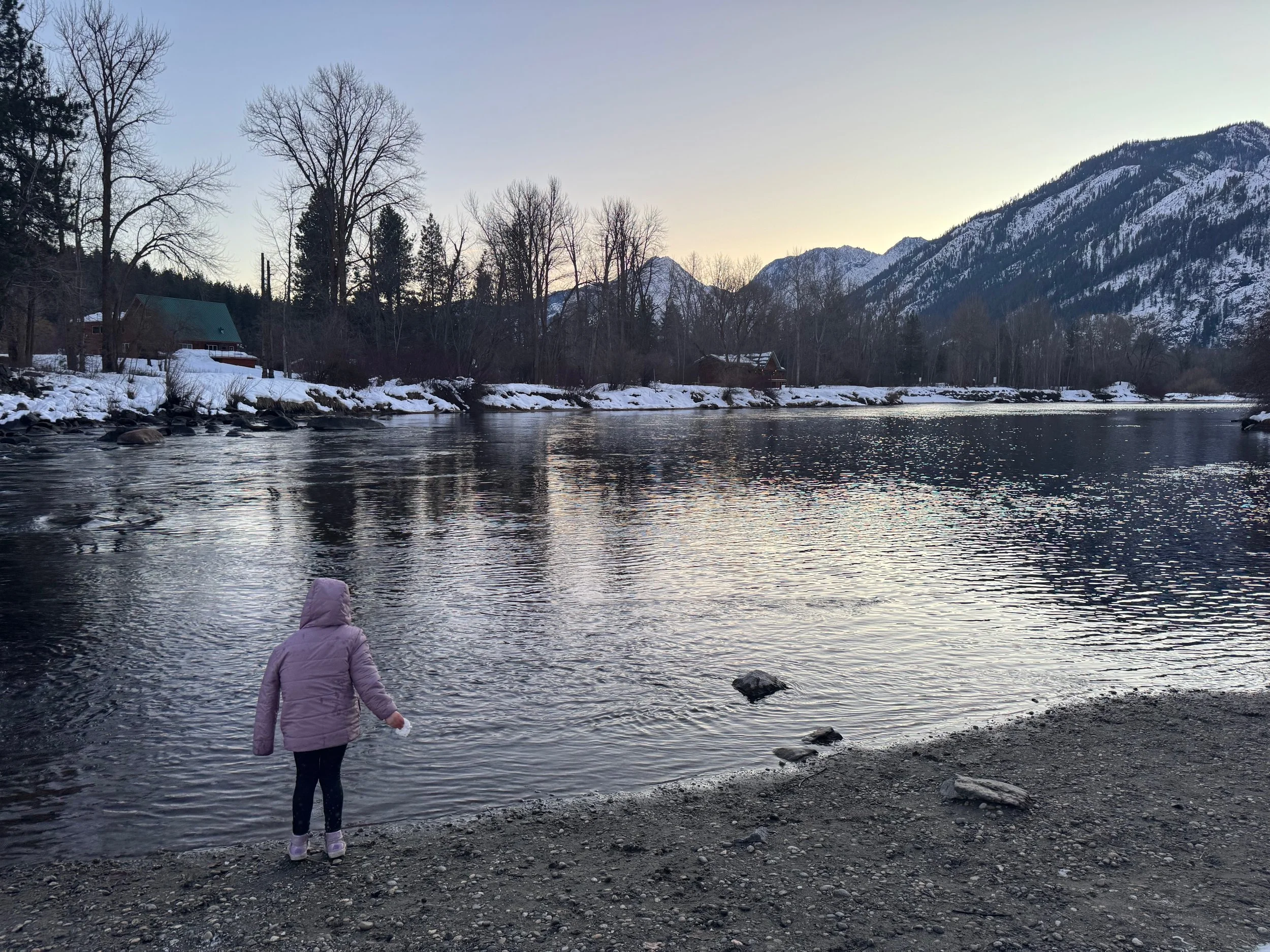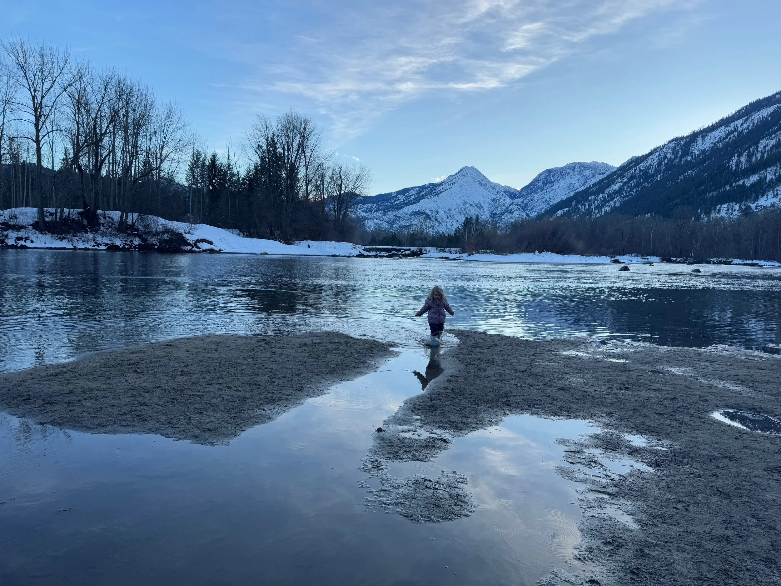 There are several river beaches on the Waterfront trail that are definitely worth walking down to see. We somehow timed it that, we were there a little before sunset which just added to the magic. If my kids see water, they have a strong overwhelming urge to go into it. It doesn't matter the season or if they already feel cold. They had waterproof boots on so we let them go at it. They happily played in the water for an hour while the sun was setting. Next to us on a beach, us adults watched a surprise proposal being set up and the couple come down with a photographer. After about 30 minutes of the kids playing, without any incident, we figured our luck would run out soon. So one of us walked back to the hotel to get the car so there would be a quick exit in the case water seeped to their socks and they had enough. Sure it enough it happened and I walked with a couple wet kids, to a main road close to town and got picked up and drove to our hotel. Despite the ending, they had a great time tossing rocks and jumping around in the shallow water around the beach.
