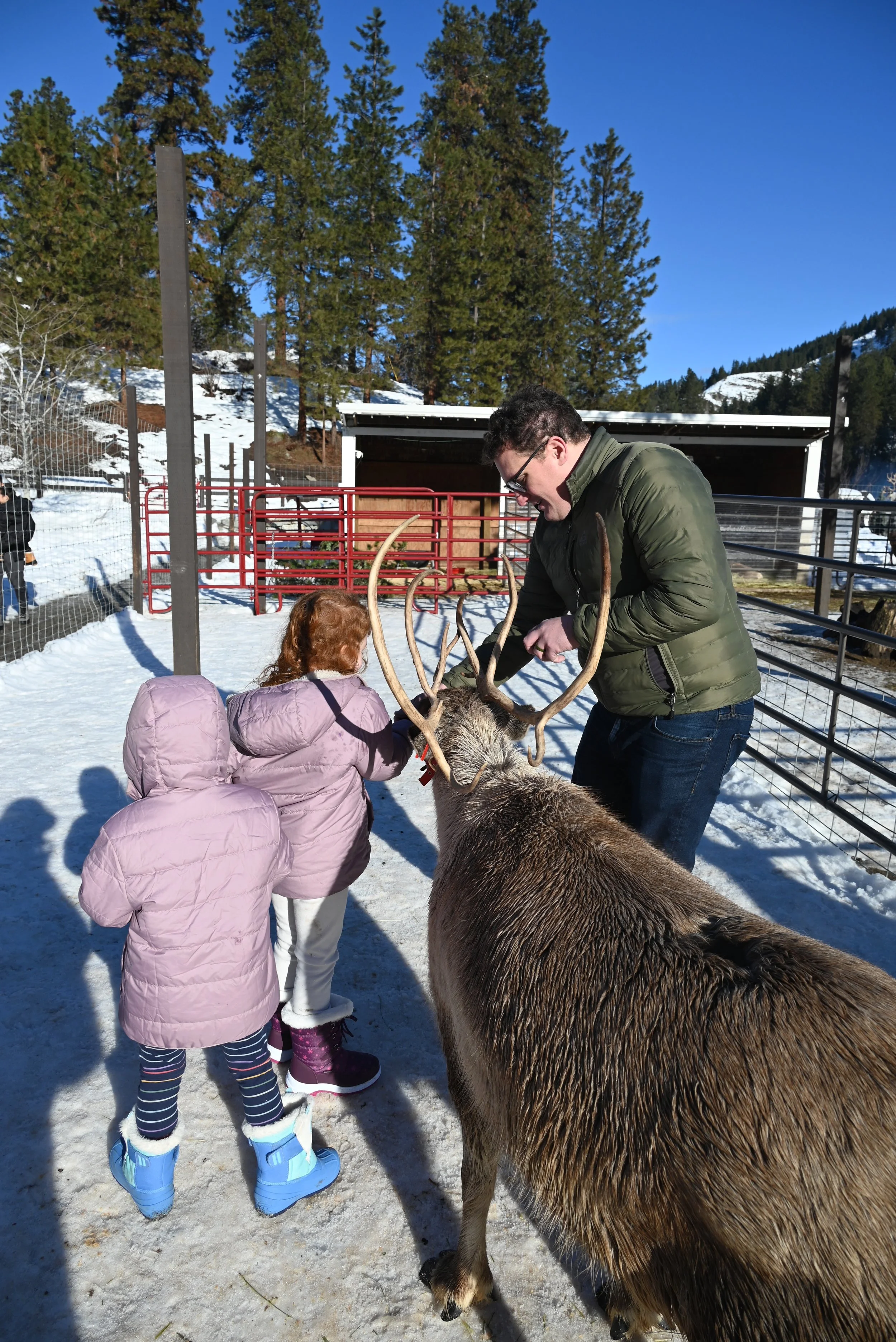 Our 5 and 3 year-olds started off a bit nervous around the reindeer but quickly got comfortable with them when they saw how calm they were. With our 3-year old, she was only willing to feed them if her hand was in ours. The employees working in the enclosures were able to tell us all the reindeers names, when they were born, and knew all of their personalities. There were shedded antlers that we were able to pick up to feel their weight. After we got out of the enclosure, there was a small play area, a gift shop, places to take photos, and a little food truck. Everyone we interacted with were friendly and helpful.