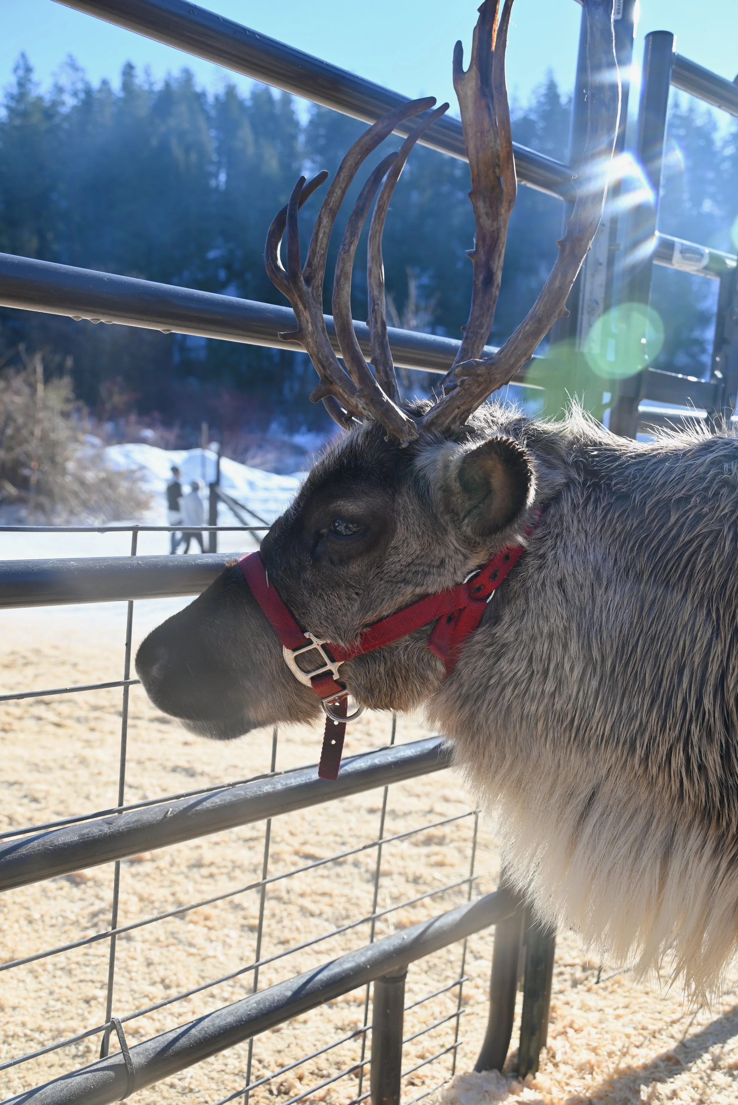 It is a bit expensive for a petting-zoo like experience, but for being a likely once in a lifetime activity, I found it worth it. It starts with an impressive professional quality video about reindeer, which we learned quite a bit from. It was also very clear just how much the family who owned the farm cared about all of the animals in the herd. It held the attention of the young kids in the audience – including my own – while also being humorous and educational for all of the adults. After the video, you are separated by whether you are going to the main enclosure or cupids corner and are led to the reindeer. You get about 15-20 minutes in the enclosure to feed the reindeer, take photos and pet them. If you are in the main enclosure, they give you fresh willow branches to feed to the reindeer and in the cupid’s corner, they gave us dry pellet like food in a small cup to feed them from our open palms.