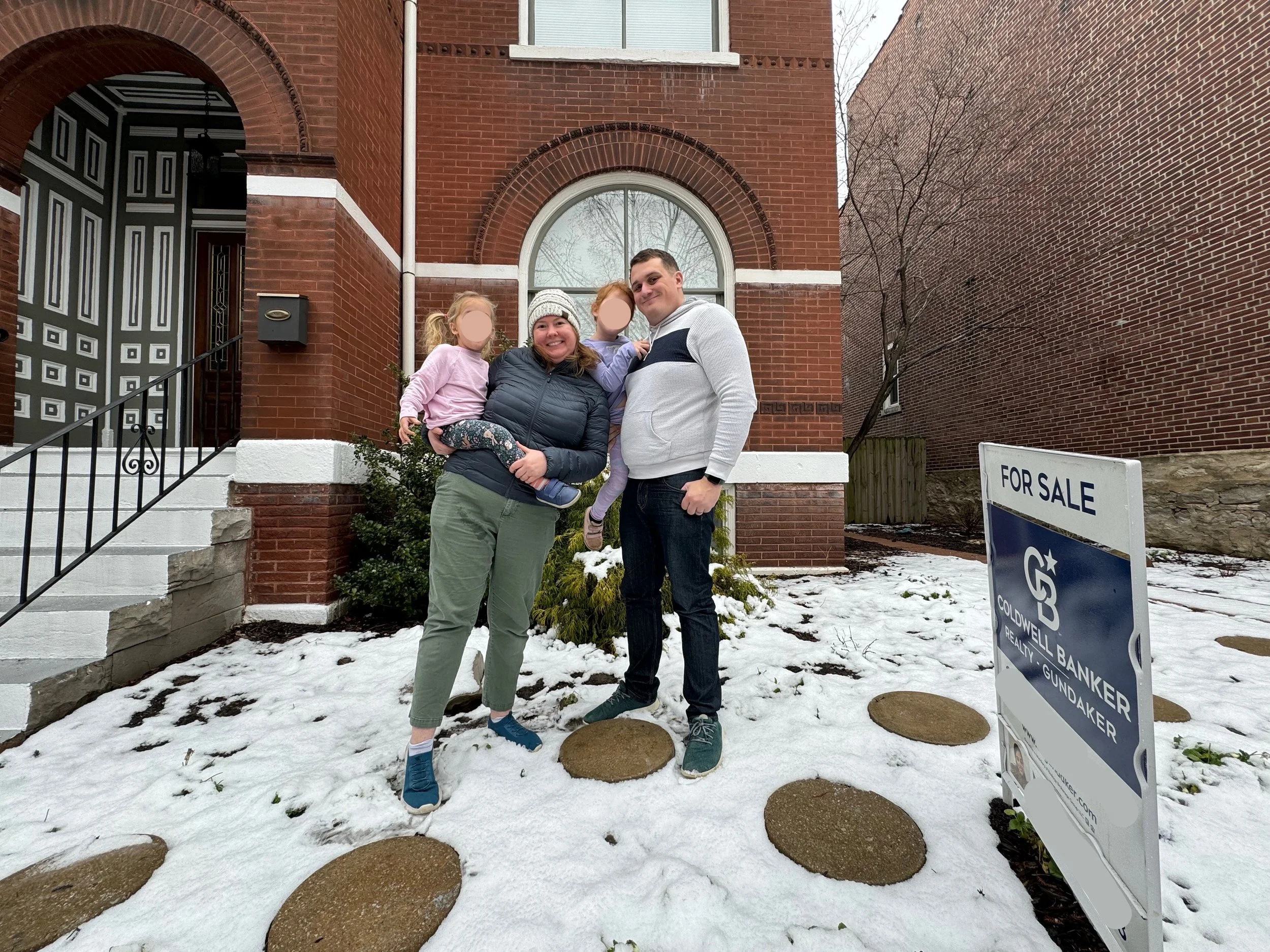 Our final photo in front of our sold home in the snow
