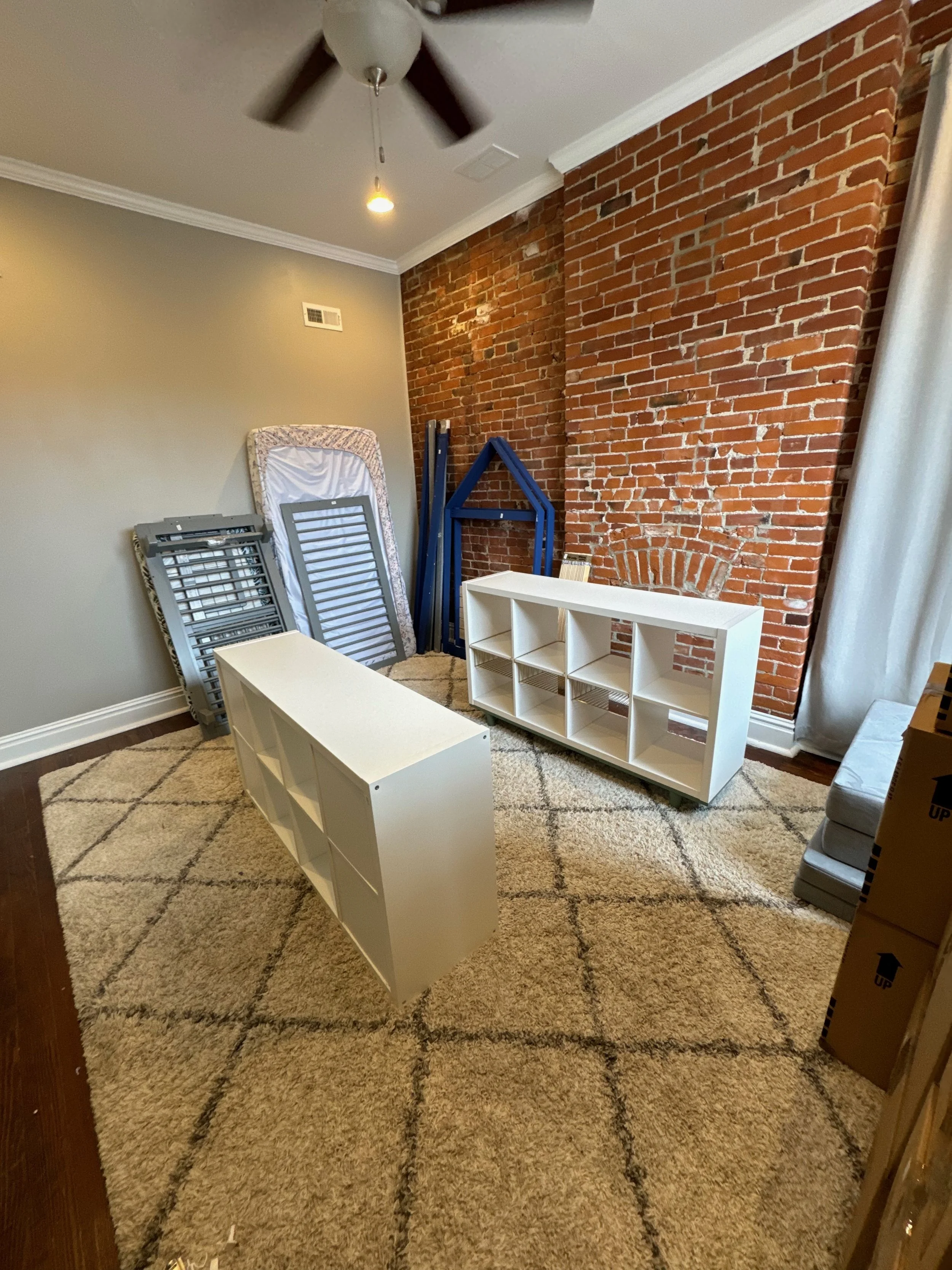 On the first day of the movers, they neatly - and with a LOT of packing materials - packed up all of our items. Each cheap plate that we’ve had since college, was carefully packed. They packed everything with far more care than we would have. There was a special mover that was there that was in charge of taking apart the crib and the TV. They needed someone from our household to be there the entire time the movers were there to approve each inventory sheet. My husband was with them while I took the kids to their grandparents and a play center. I am sure it would have been both emotional and boring to watch people pack up all of their belongings.