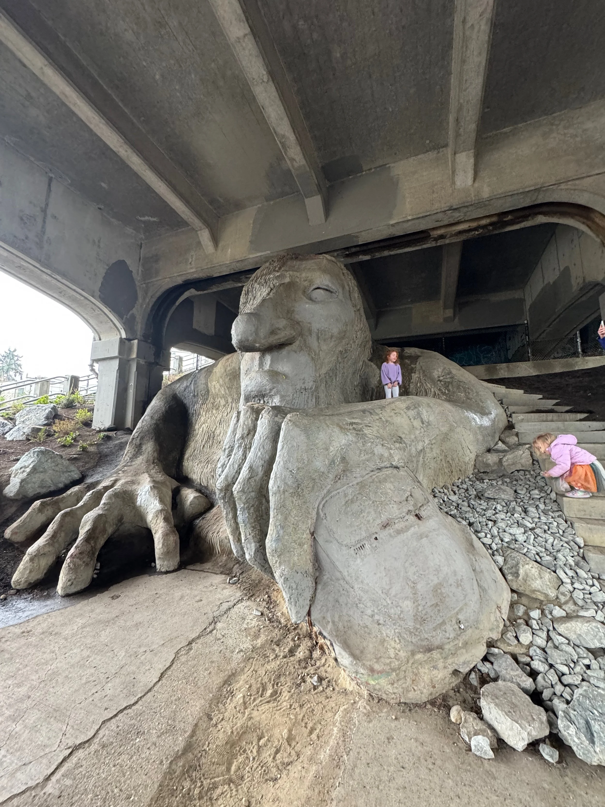 Thomas Dambo, a danish artist, built 6 different wooden trolls through Western Washington and Portland in 2023. The OG Troll, the Fremont Troll, is found under the Aurora Bridge in Seattle in the Fremont neighborhood. This troll has been there since 1990 in an effort to add art to this area under the bridge. In total, we are going to talk about these 7 trolls.