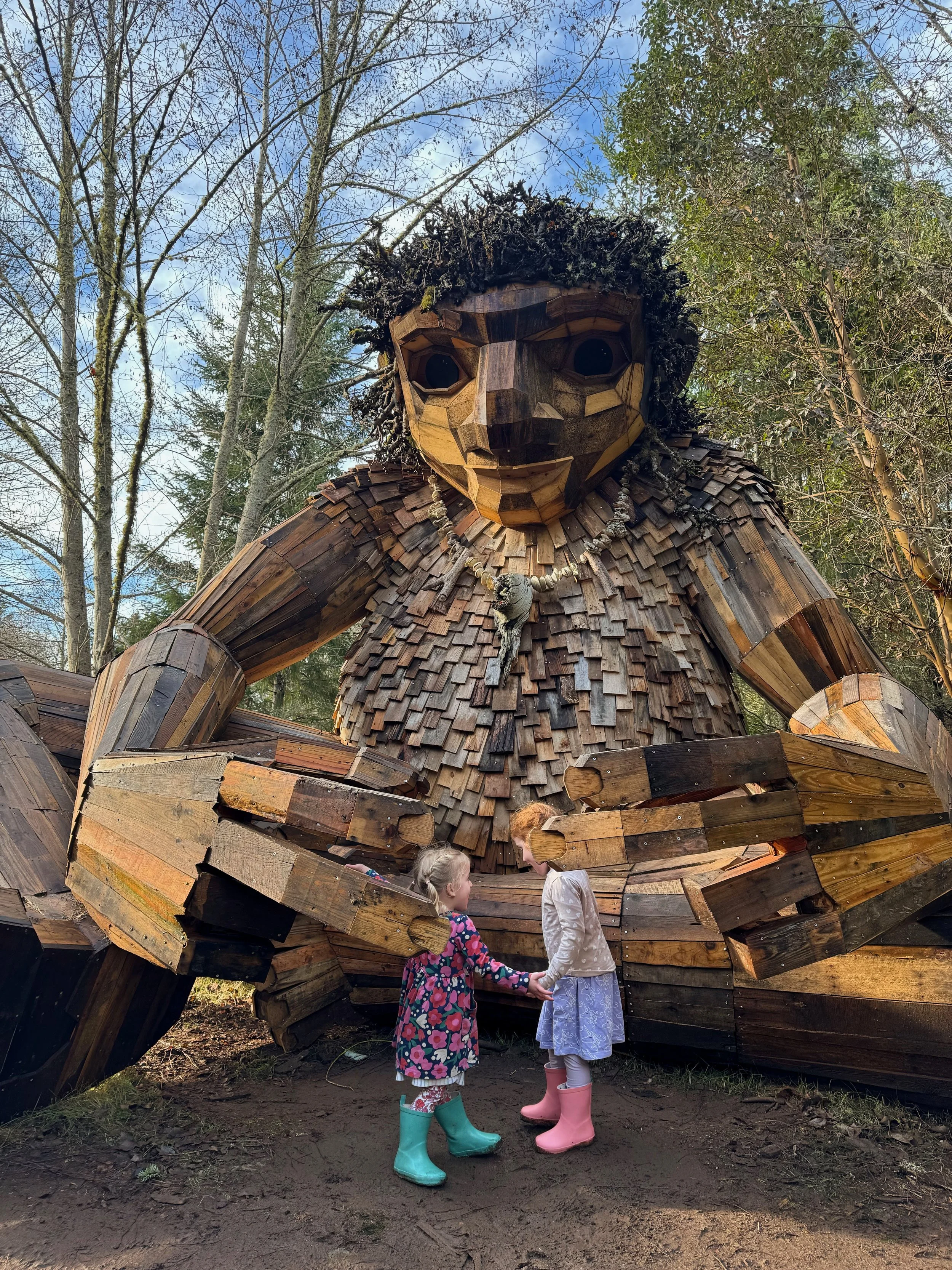Thomas Dambo’s giant trolls that have been scattered throughout the Pacific Northwest feel so at home here that is a surprise that have only been here since 2023. Dambo built 6 artfully crafted giant trolls made from recycled wood and hid them along trails, in parks and near museums. In the two years that we have lived in the Seattle area, we have gone to visit each of the trolls numerous times. They each are unique with their own personalities and help encourage people to explore parts of the PNW that they might not normally. In this guide, I am also including the Fremont Troll in Seattle, which has been around for many years prior to the Dambo trolls and captivating in its own right. This guide will go through how to find the trolls, great places to visit near each of the trolls to extend your outing, and tips on visiting with kids.