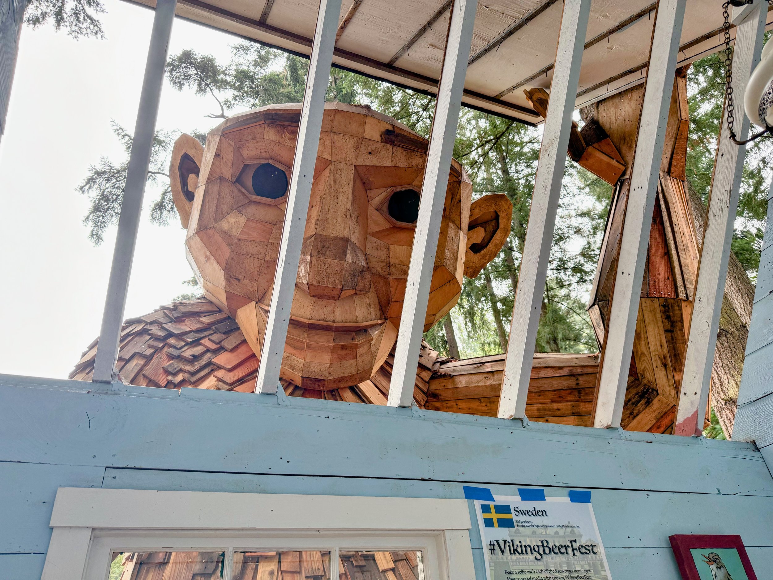 The second troll that lives in Seattle proper (along with Bruun Idun). Frankie is definitely not giving off intelligent vibes but he sure is fun. Contrasting with Oscar, Frankie is likely the most seen of the Pacific Northwest trolls. He can be seen from a busy street and is right at the entrance of the National Nordic Museum. Frankie has one of his feet standing on a bench breaking it with both of his hands with an open grip. If you can get yourself or your kids up there, you can get a photo of Frankie holding you in his hands.