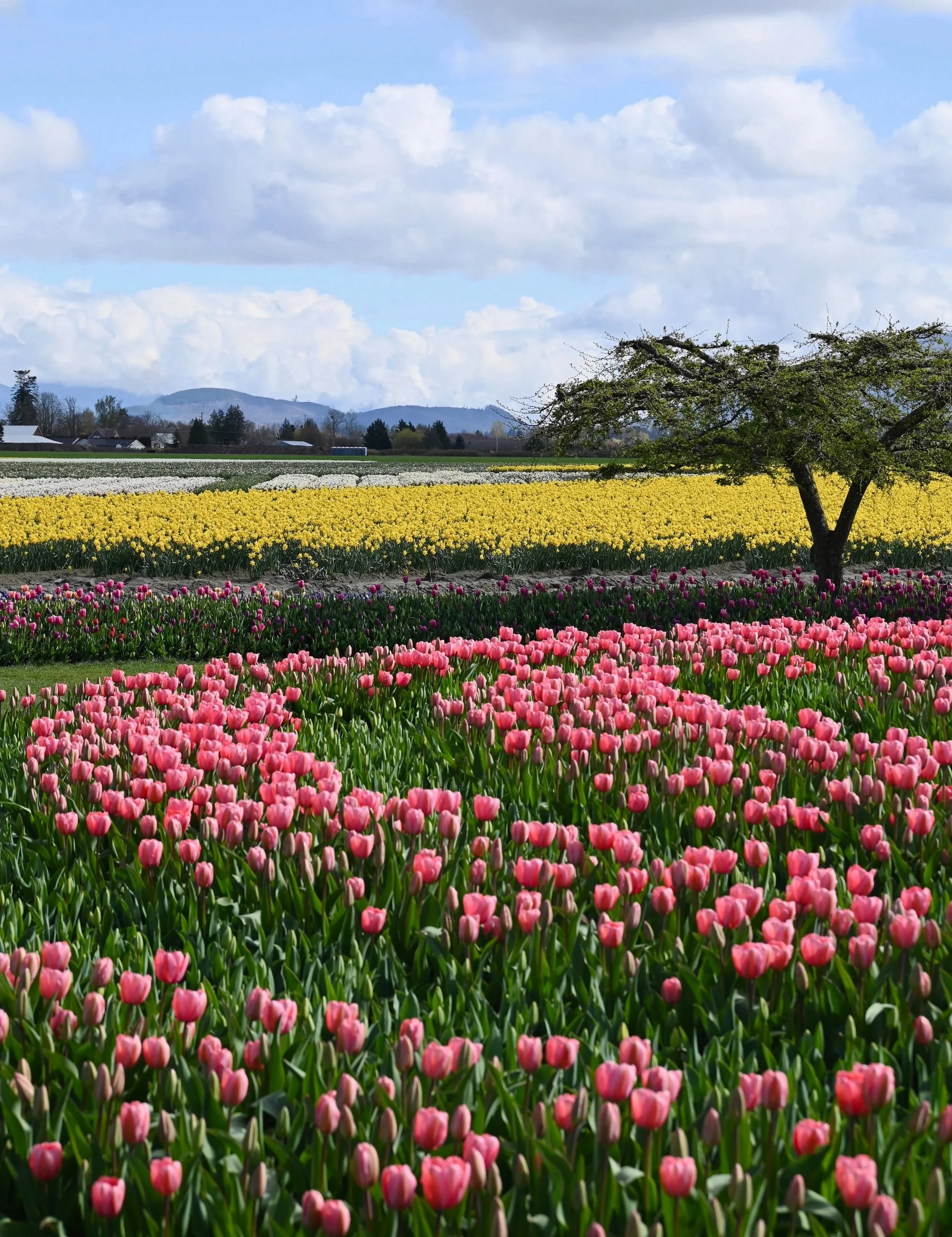 There are many more tulip farms you can drive past in the area. I would recommend picking one or two of the farms to visit and spending the rest of the day driving around the fields or getting a meal in Mount Vernon, WA. I would highly recommend looking up the bloom reports before driving up there from Seattle. The weather controls how early or late the tulips bloom in April. While there are multiple different varieties of tulips and you will likely see tulips no matter when you visit in April, peak bloom is truly magical if you have the flexibility.