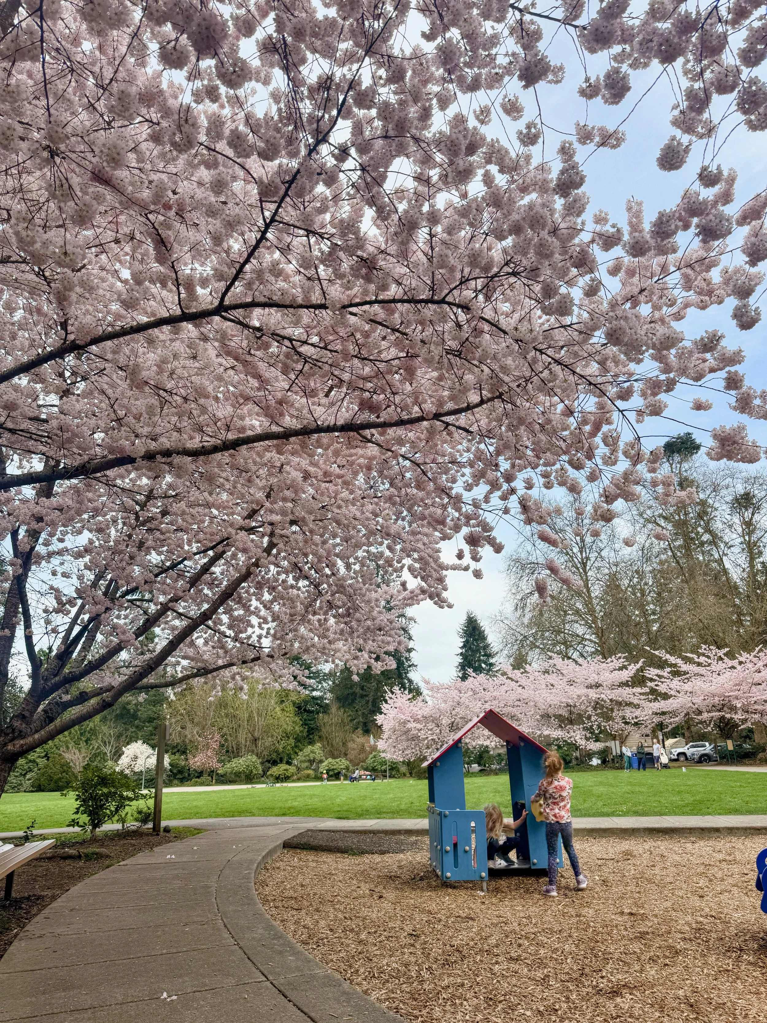 Cherry blossoms around Green Lake Playground, March 20th