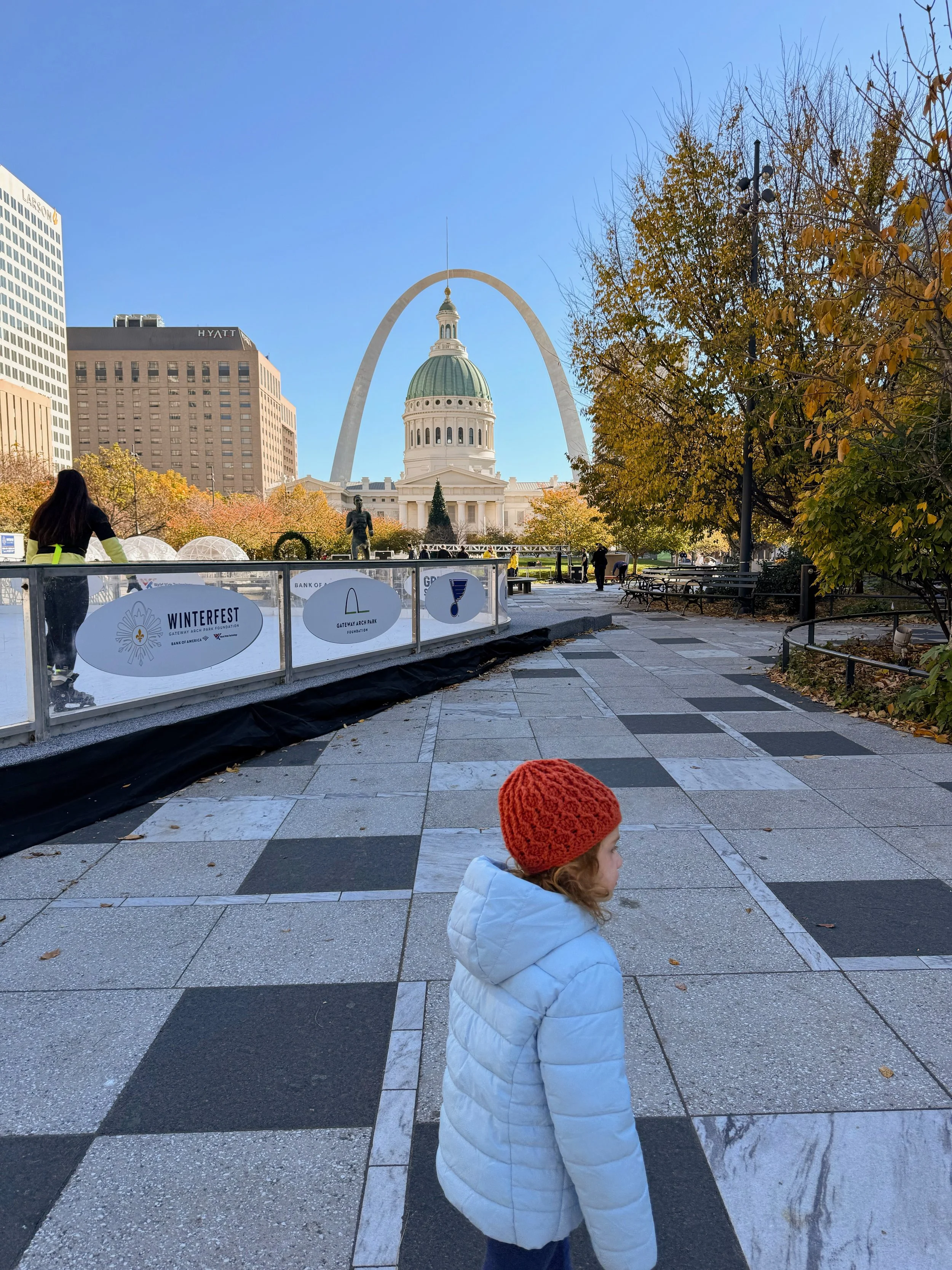 To enjoy all of the fall foliage downtown, I would recommend parking near the Citygarden Sculpture Park, exploring it first before continuing your walk to Kiener Plaza Park and finally ending at the Gateway Arch. Alternatively, if you are staying near the Arch, visit that first and walk to the Citygarden before turning around.